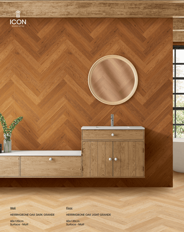 Introducing the Icon Glazed Herringbone Oak Light Grande Vitrified Tile (2 x 4')mm | (2 x 2')mm | (1 x 2')mm, a premium Tiles & Marble solution from the trusted Vitrified Tiles brand. Proudly supplied by TILE VILLAGE, located in the heart of Ambala.